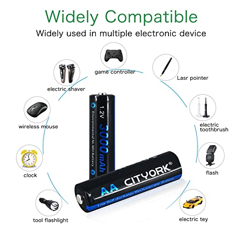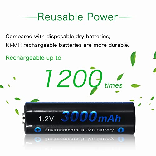 Contenuto della confezione: 4 batterie ricaricabili Ni-MH AA da 3000 mAh + 4 batterie ricaricabili Ni-MH AAA da 1100 mAh + 2 batterie. (L'alloggiamento della batteria pone fine alle batterie in cortocircuito o alle scariche indesiderate e garantisce conservazione e protezione ottimali).
