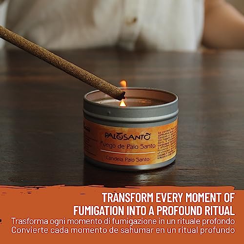 PALOSANTO - Candela Profumata con Olio Essenziale di Palo Santo e Cera Vegetale - Candela Incenso - Ideale Come profumatore e purificatore Ambienti - Fatta a Mano in Italia