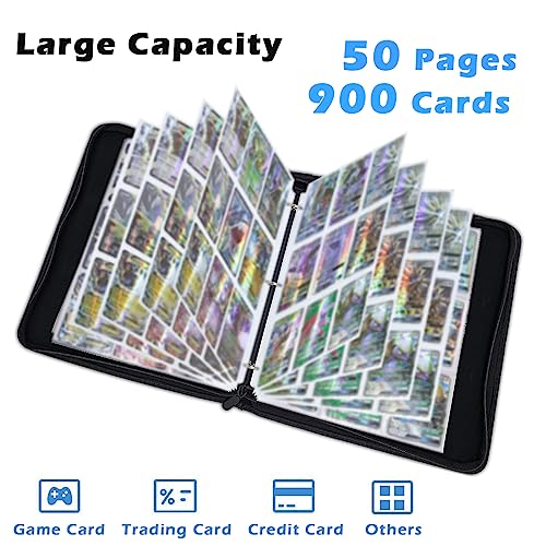 【900 Tasche】Album pagine raccoglitore carte con 50 fogli, 9 tasche per lato, design a doppia faccia, 18 tasche per foglio, contiene fino a 900 carte, inoltre è riempibile/espandibile
