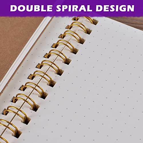 PALUDO 5 Pezzi Blocco Note A5 Quaderni a Spirale a Puntinato, Quaderno Appunti A5 in Copertina Carta Kraft 100 Pagine/50 Fogli, Quaderno Spirale Taccuino Schizzi Set per Scuola Viaggio Ufficio