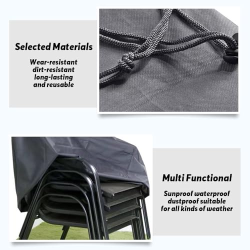 TESSUTO DI ALTA QUALITÀ: Copertura mobili giardino impermeabile in tessuto Oxford 210D per sedie da giardino, sedie impilabili e altri mobili da esterno. Il telo protegge efficacemente le sedie da giardino dall'usura, dai raggi UV e da altri elementi esterni come luce solare, polvere e pioggia.