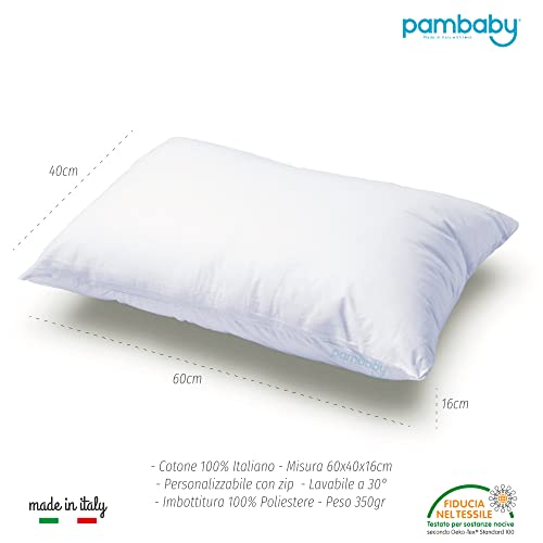 PAMBABY Guanciale Cuscino Lettino Cotone 100% Lavabile a 30°C Misure 40x60 per Bambini Neonati 6+mesi PERSONALIZZABILE c/zip sfoderabile + Federa OMAGGIO