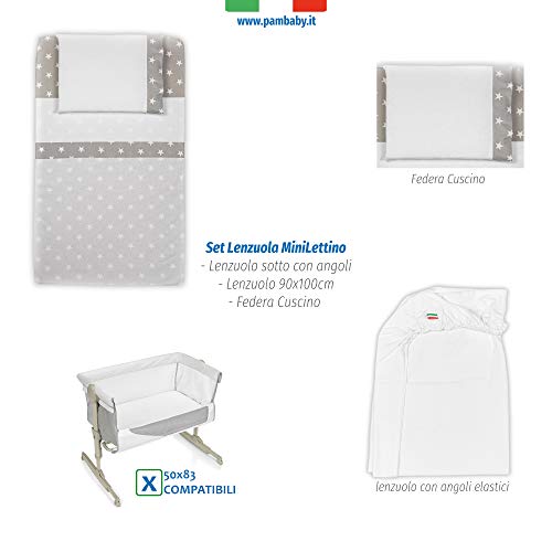PAMBABY Set Lenzuola MiniLettino per Next to Me in Cotone100% Compatibile con culle cosleeping Chicco Lullago Kinderkraft UNO Cam Cullami Brevi Janè misure 50x83cm Cert.OEKO-TEX (STELLA GRIGIO)