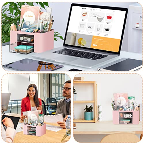 PAMIYO Organizzatore da scrivania a 7 scomparti, in plastica, per ufficio, casa, scuola (rosa)