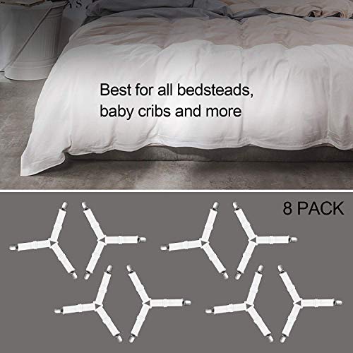 PAMIYO 8 Pezzi Clip Lenzuola Ferma Lenzuola Clip Lenzuola Lenzuola Bretelle Regolabili Elastici 3-Modi Triangolo Lenzuola(Bianco)