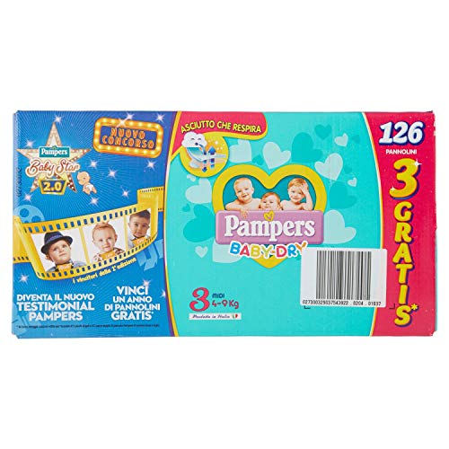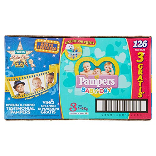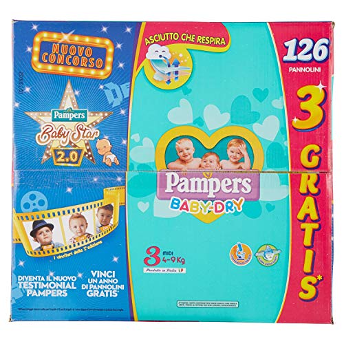 Pampers Baby Dry Pannolini Midi, Taglia 3 - Megapack da 126 Pezzi