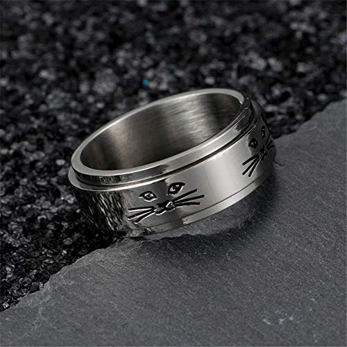 PAMTIER Argento Gatto Adorabile Anello per Le Donne Acciaio Inossidabile Dimensione Girevole 22