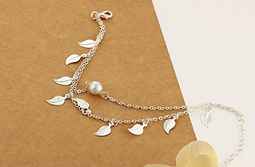 PAMTIER Due-Strato Piccole Foglie Singolo Perlina Estate Spiaggia Cavigliere Argento da Donna Lega