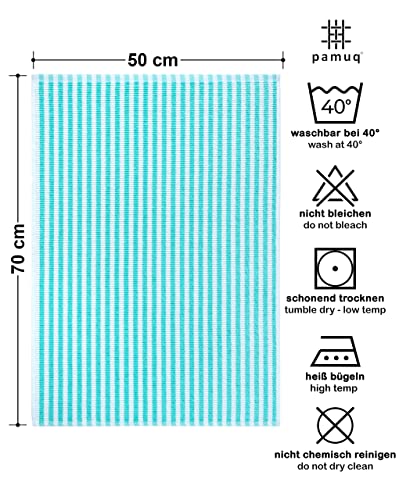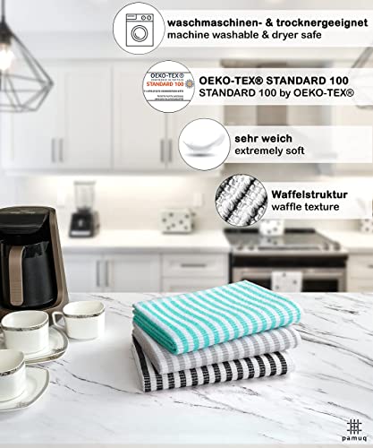 Pamuq Strofinacci in cotone 100% - nero, grigio, turchese, a righe, set da 3, 50 x 70 cm, ganci - strofinacci in cotone per asciugare la cucina, strofinacci da cucina