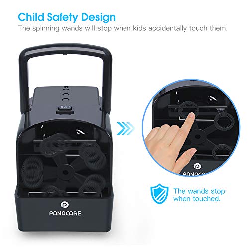 [Design adatto ai bambini] grazie al suo esclusivo design elettrico, la macchina per bolle di sapone arresta la rotazione delle bacchette per evitare che i bambini si feriscano le dita se le toccano accidentalmente.