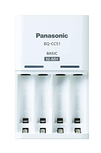 Panasonic eneloop, caricatore base, per 2/4 pile NiMH AA/AAA, comprese 4 pile eneloop AA stilo, min. 1900 mAh, 2100 cicli di carica