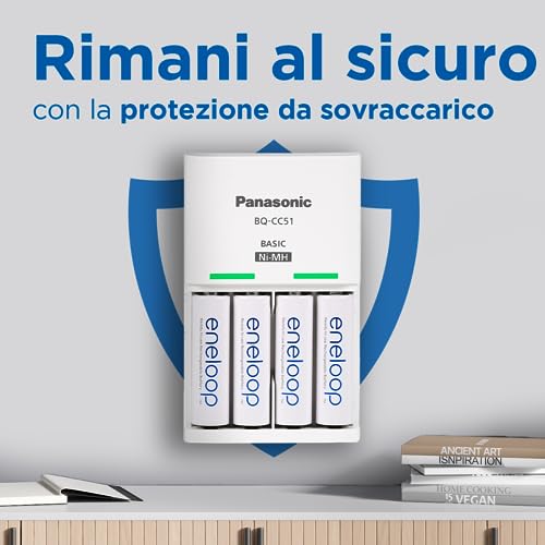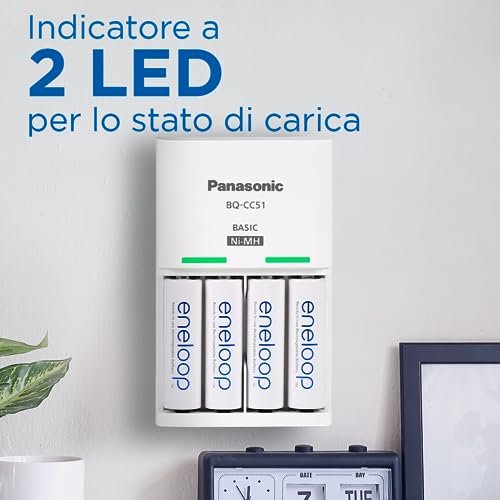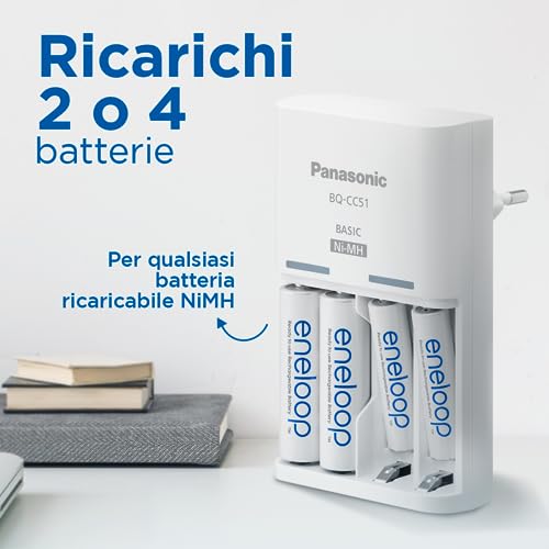 Panasonic eneloop, caricatore base, per 2/4 pile NiMH AA/AAA