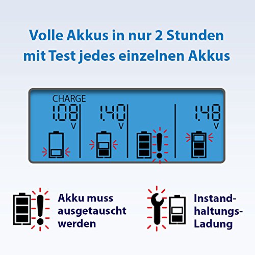 Il caricatore gestito con microprocessore è dotato di controllo singolo e controlla e ricarica ogni cella separatamente. Carica 1-4 pile NiMH AA (stilo) o AAA (ministilo) e anche dispositivi mobili grazie alla porta USB.