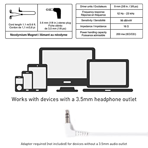 Audio stereo in-ear audio bilanciato tonalmente con alti nitidi e note basse profonde, oltre a una risposta in frequenza più ampia e una qualità del suono vivace per l'audio registrato. Cavo esteso per cuffie lungo, cavo lungo 1,1 m che si infila comodamente attraverso vestiti e borse, rendendo facile il collegamento