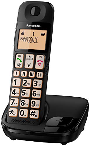 Panasonic KX-TGE110JTB Telefono Cordless Digitale (DECT) Singolo ad Utilizzo Facilitato, Tasti Grandi, 3 Tasti di composizione rapida, Compatibilità con Apparecchi Acustici, Nero
