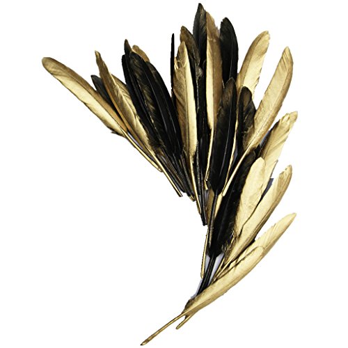 PANAX Piume d'oca 50 pezzi Piume naturali 10-15 cm di lunghezza per Art Design, Carnevale, Halloween, artigianato, Handwerk, fai-da-te, costumi indiani, decorazione Un lato Nero e l'altro dell'oro