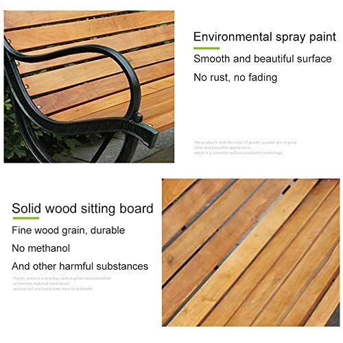 Panca da giardino per esterni con posti a sedere in terrazza, 125 * 58 * 76 cm in legno massello e panchina in metallo in ghisa, panchine per balcone all'aperto resistenti alle intemperie