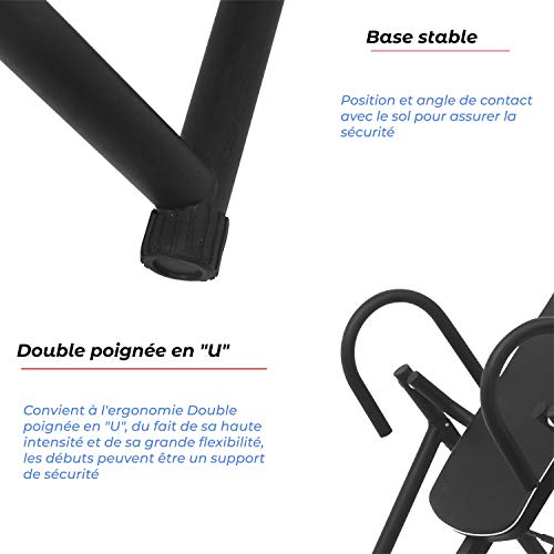 ANGOLO DI INVERSIONE: L'angolo di inversione dell'Inversionstrainer è regolabile in 4 tempi (20 °, 40 °, 60 °, 80 °) e inversione libera (0-180 °). Barra di traino per alleviare la colonna vertebrale e i dischi intervertebrali. Grazie alla struttura triangolare del nostro Inversionstrainer, l'allenamento sicuro è garantito in ogni momento.