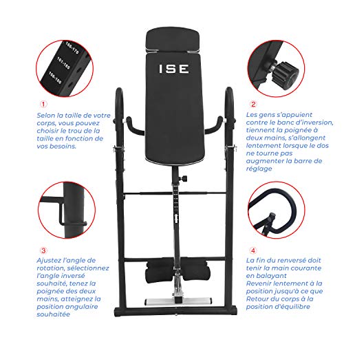 ISE Panca a Inversione Gravitazionale Pieghevole per Uso Domestico, Come Un Dispositivo Multifunzione con 4 Diversi Angoli di Inversione & Inversione Libera, Utenti Fino a 195 cm e 120 kg, SY-1012