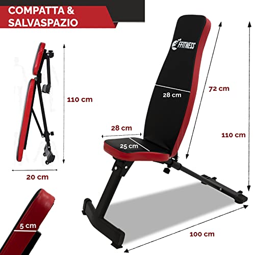 COMPATTA E SALVASPAZIO▶ Ridotte dimensioni, massima efficienza. La panca reclinabile potrà essere utilizzata tanto in casa quanto in palestra. Terminato il tuo training potrà essere ripiegata facilmente e riposta anche negli spazi più stretti o trasportata (110 x 40 x 20 cm)