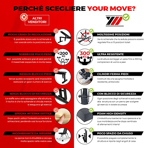 YM Panca Regolabile Palestra Multifunzione Pieghevole Professionale, Tubolari Rinforzati, 300 kg., Allenamento e Fitness, Schienale e Sedile Regolabili. Garanzia e assistenza Italia.