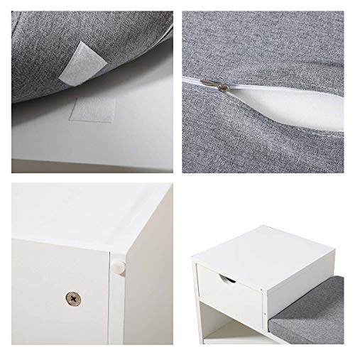 Mantenilo facile: questo scarpiera è dotato di un comodo sedile imbottito per essere utilizzato come panca da seduta per una sola persona. Due scarpiera a doghe basse che offrono spazio per riporre le tue calzature quotidiane e cassetti estraibili per organizzare le scarpe e altri oggetti, come pennello per scarpe, smalto, cappelli, sciarpe, ecc.