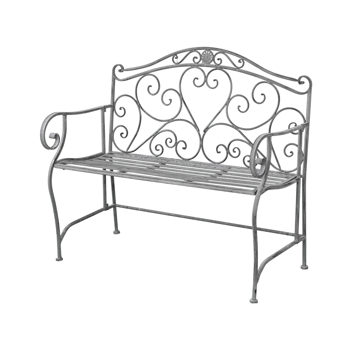 Aggiungi un tocco shabby chic al tuo arredo giardino con questa graziosa panca in metallo. La lavorazione dello schienale e dei braccioli la rende davvero irresistibile e darà qual tocco in più ai tuoi spazi all'aperto. Potrai riposarti all'ombra di un albero, mentre sfogli la tua rivista preferita o prendere il sole e chiaccherare in compagnia. La verniciatura con trattamento di elettroforesi, a basso impatto ambientale, garantisce una copertura totale e un'ottima resistenza alla corrosione, oltre a un bellissimo colore bianco ossidato. Portata massima: 190 kg. Dimensioni: 103x95x54 cm.