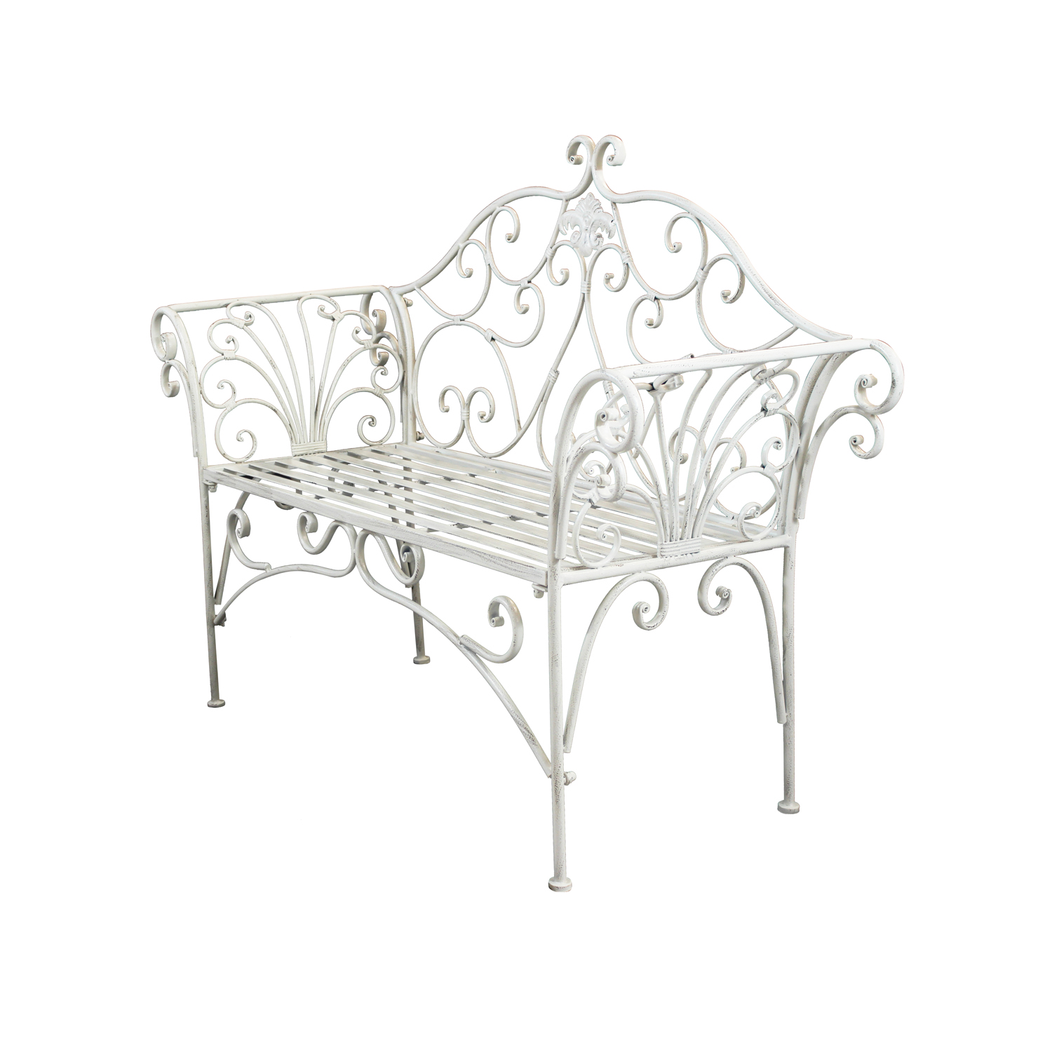 Aggiungi un tocco shabby chic al tuo arredo giardino con questa graziosa panca in metallo. La lavorazione dello schienale e dei braccioli sporgenti la rende davvero irresistibile e darà qual tocco elegante e curato ai tuoi spazi all'aperto. Potrai riposarti in giardino, chiaccherare sul terrazzo o prendere il sole comodamente seduto. La verniciatura con trattamento di elettroforesi, a basso impatto ambientale, garantisce una copertura totale e un'ottima resistenza alla corrosione, oltre a un bellissimo colore bianco antico. Portata massima: 200 kg. Dimensioni: 136x96x46 cm.