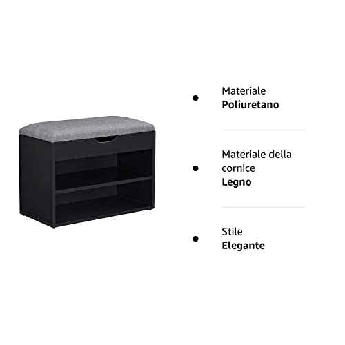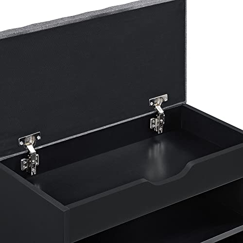 Panchina Portascarpe con Seduta Apribile (AxLaxP) 46 x 60 x 30 cm Panca da Ingresso/Corridoio Mobiletto con Seduta Imbottita, Contenitore e 2 Ripiani - Nero/Grigio