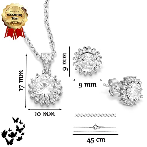 Panda-Jewellery Set di gioielli in argento Sterling 925 con cristalli - Rotondo - Colore bianco - Orecchini da donna - Collana con ciondolo - Gioielli da donna con confezione regalo