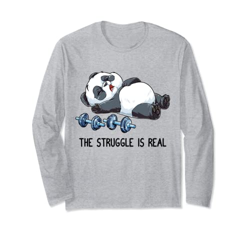 Panda The Struggle Is Real Weightlifting Fitness Gym Funny Maglia a Manica