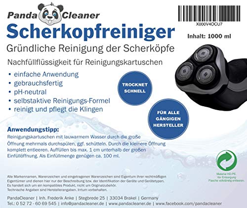 PANDACLEANER Detergente per testine di rasatura 2x1000ml - Liquido di ricarica per cartucce di pulizia | L'alternativa a basso costo | Adatto per le cartucce CCR e standard Braun