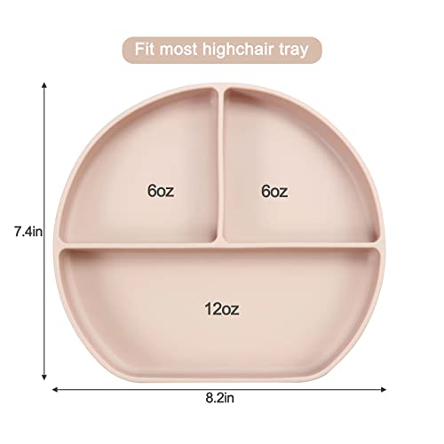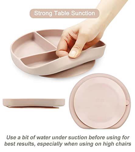 PandaEar Piatti Bambini Pappa Svezzamento| Piatto con Ventosa per Bambini e Neonati in Silicone| Soggiorno diviso senza BPA| Tappetini Antiscivolo con forte aspirazione| Rose
