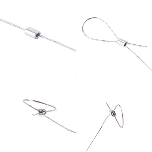 Quantità: la confezione include 1 bobina in filo di acciaio inossidabile 304 e 30 pezzi di manicotti a crimpare in alluminio.