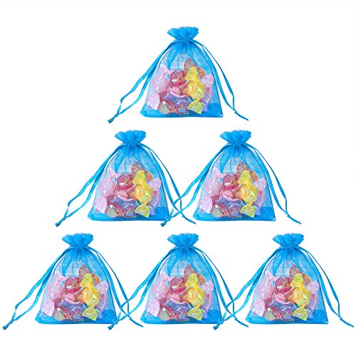 PandaHall 100PCS Sacchetti Regalo in Organza Sacchetti Portaconfetti Borse per Gioielli, Rettangolo, Ciano, Circa 7cm di Larghezza, 9cm di Lunghezza