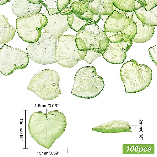 PH PandaHall Set di 100pcs Verde Trasparente Acrilico Foglia Ciondolo Di Collana Chunky Gioielli, Circa 15 mm di Lunghezza, 15 mm di Larghezza, 2 mm di Spessore, Foro: 1.5 mm