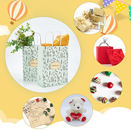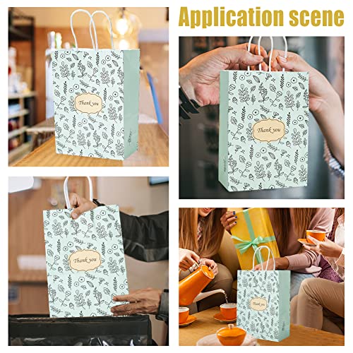 Sacchetti regalo di fiori verdi: la borsa verde è stampata con la scritta "Grazie", fiori ed erba stampati. Il design di classe è perfetto per tutte le occasioni, compresi compleanni, matrimoni, docce per bambini, Natale o regali in genere.