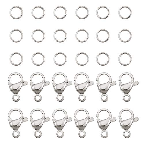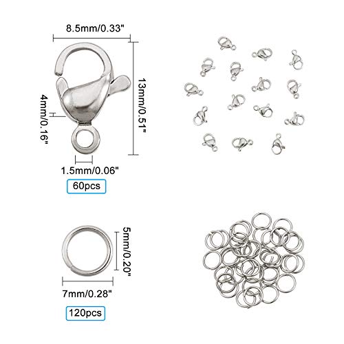 PH PandaHall 120pcs 7mm Acciaio Inossidabile Aperto Anelli di Salto con 60pcs Chiusura a Moschettone 13x8.5x4mm Kit di Gioielli Risultati Accessori per Gioielli Artigianali Fare