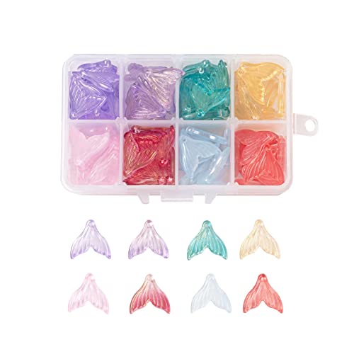PandaHall 120pcs sirena Fishtail cristallo cristallo ciondolo 8 colori verniciato a spruzzo trasparente glitter sciolto distanziatore perline per braccialetto collana orecchino gioielli fabbricazione
