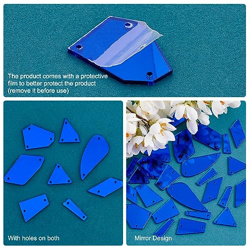 PH PandaHall 144pz Cucire su Strass A Specchio, 8 forma Irregolare Da Cucire su Specchi Acrilici Piastrelle Colorate A Specchio Blu Specchio Perline Sfuse per Costume Abito Da Sera Abbigliamento
