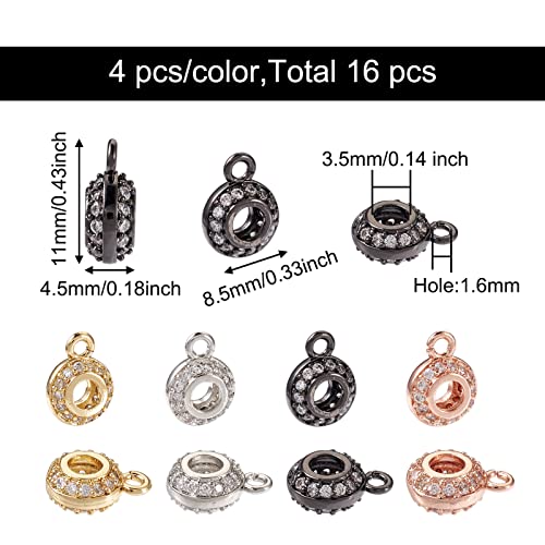 PandaHall 16pcs ottone gancio link tondo cauzione perline 4 colori micro pavimentare chiaro zirconi link Carrier perline per braccialetto europeo collana gioielli fai da te