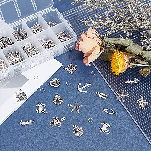 PH PandaHall 180pcs 9 stili pendenti con oceano con 50pcs anelli di salto Starfish Shell Charms a sirena per la realizzazione di gioielli per feste in spiaggia