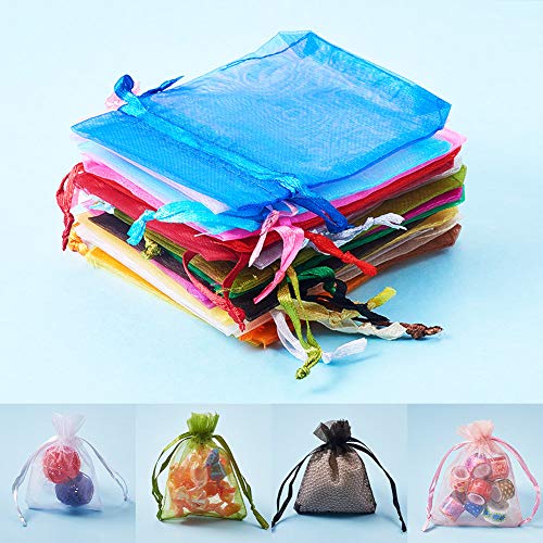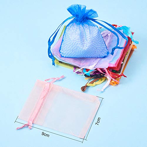 PandaHall 200PCS Sacchetti Organza Sacchetti Trasparente Buste Sacchetti per Regalo Gioielli Fiesta Matrimonio bomboniere Colore Misto, Circa 9cm di Lunghezza, 7cm di Larghezza