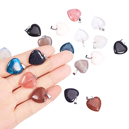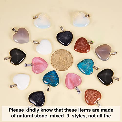 PH PandaHall 24PCS Ciondoli Pendenti Charms Pietra di Cuore per Fare Gioielli Collane Fai da Te, 20-22x20-21x5-8mm, Foro: 2x7mm, Circa 18pcs / Scatola