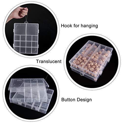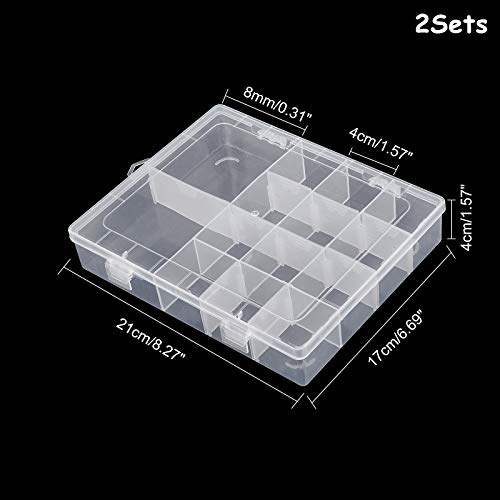 PandaHall 2pcs 14 Griglie divisori per Gioielli Scatola Organizer Rettangolare Custodia per Perline in plastica Trasparente Contenitore con divisori Regolabili per Perline Gioielli Nail Art Piccoli