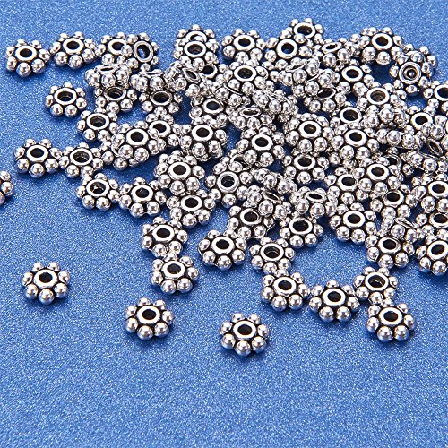 PH PandaHall 300Pcs perline intercalaire Perle di spaziatura in lega di stile tibetano perline di fiocco di neve e, Argento antico, 6 x 6 x 2 mm