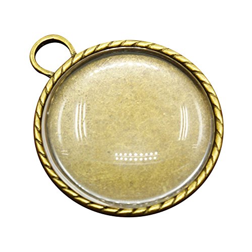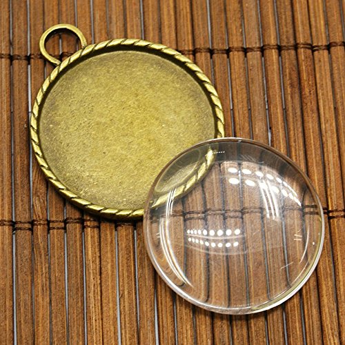PandaHall 10 Set 30mm Cabochon di Vetro Ciondoli per Collane Bracciali Cupola Trasparente e Basi Ciondoli, Stile Tibetano, Bronzo Antico, Ciondolo:34x2.5mm, Foro: 5.5mm, Vassoio:30mm, Vetro:30x8mm