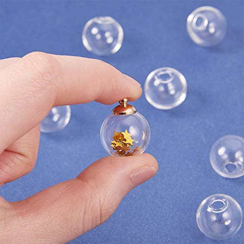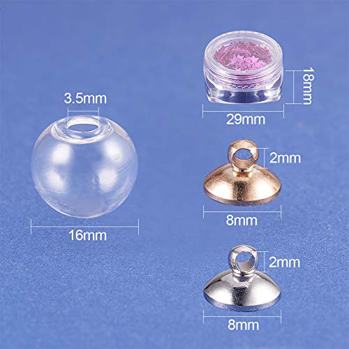 PH PandaHall 30pcs 16mm Mini Vetro Trasparente Bottiglia di Vetro con Star Manicure Paillettes Desideri Bottiglie di Vetro per Pendente Fai da Te Charms Stud orecchino Making, 8mm cap (Argento, Oro)