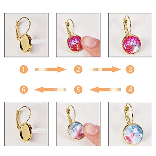PH PandaHall 30pcs 3 colori Cabochon in ottone con orecchini a leva con montatura a padiglione Lunetta con cabochon rotondi piatti da 30mm 12mm per orecchini fai-da-te Accessori