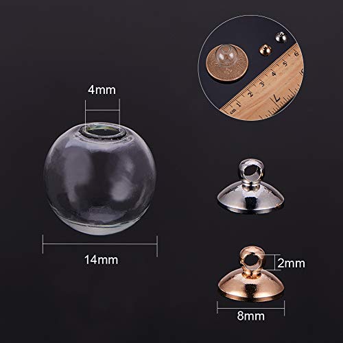 PH PandaHall 30pcs Trasparente Rotondo soffiato Globo Bicchiere Vuoto Desiderio Bottiglie di Vetro con Tappo in Ottone Dorato/Argento Cappuccio Fai da Te ciondoli per DIY Gioielli 14mm